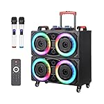 includes wireless microphones and Bluetooth connectivity with built-in lighting.